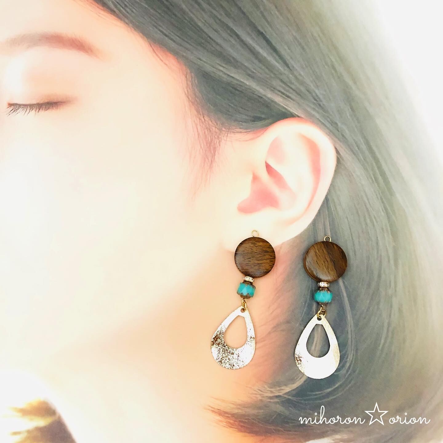 ウッドビーズ×しずく型ゴールドの夏アクセサリー