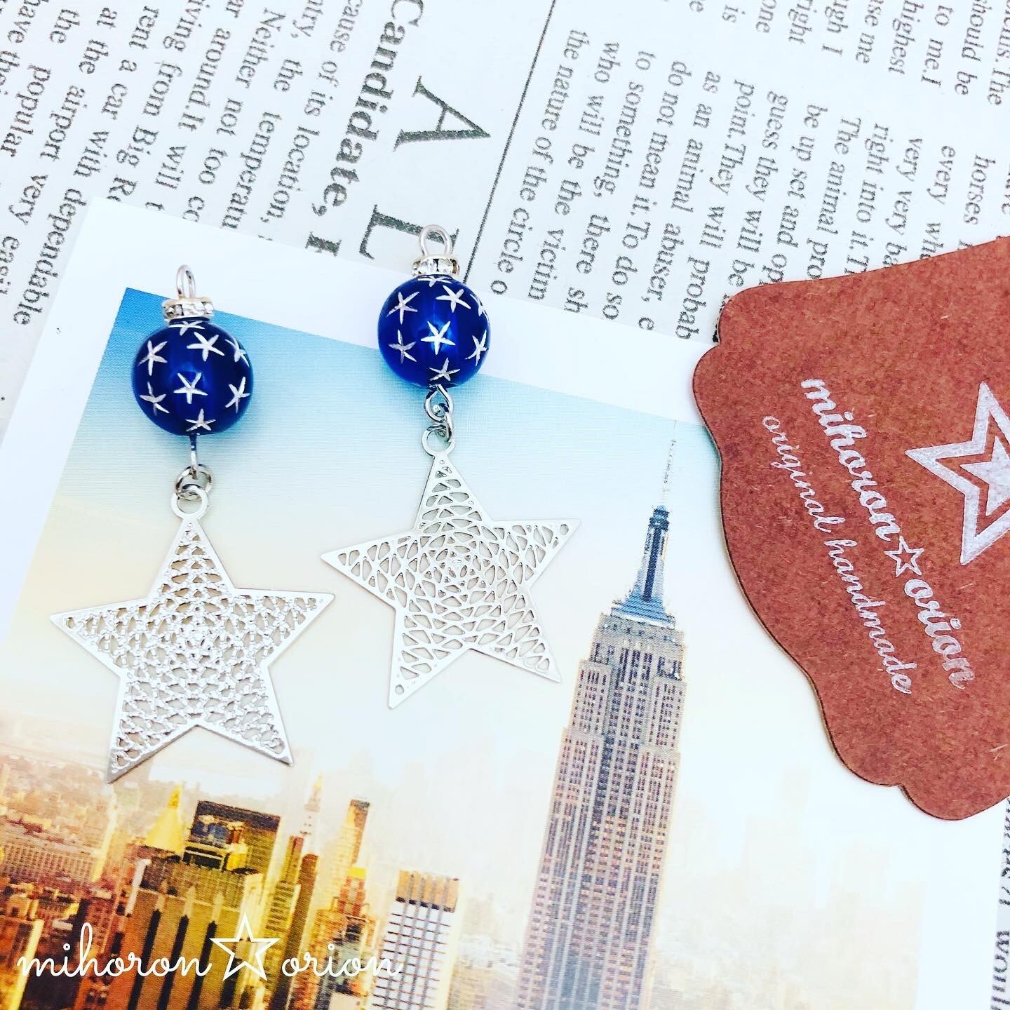星模様の入った夜空っぽいブルーのビーズと大きな銀色の星。