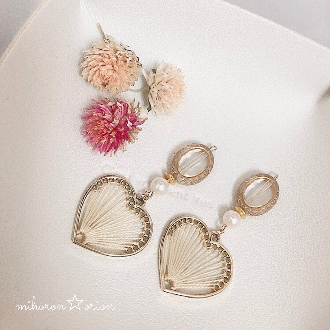 金属ハート部分はアイボリーの糸が組まれていて扇子のように見える個性的なチャームです♡