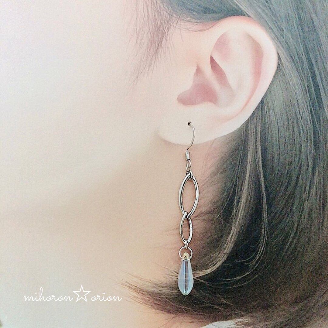 クリアなしずく型のガラスビーズに連結リングを合わせた爽やかなアクセサリー☆