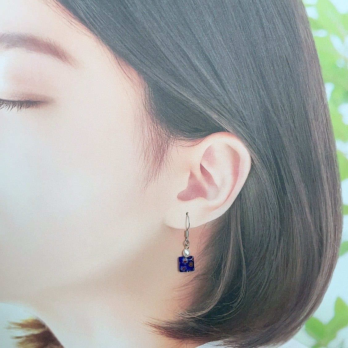 ベネチアングラス風ミルフィオリは小さな濃ブルーのスクエアビーズ☆