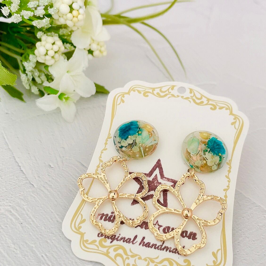 下にはゴールドメタルの大ぶりなお花。揺れる感じがとても可愛いです♡